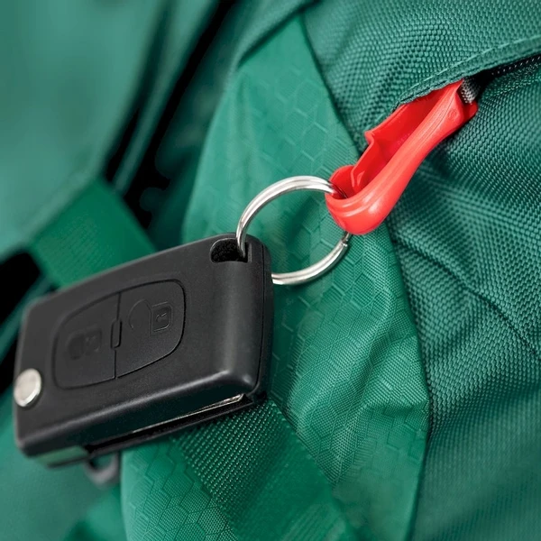 Aan de binnenkant van de voorkant vind je een vak met rits voor het opbergen van kleine dingen zoals je zonnebrand, lippenbalsem en kleingeld. Ook vind je daar aan de bovenkant een klein doorzichtig vakje voor je ID-kaart. Hier vind je daarnaast nog een krasvrij vakje voor bijvoorbeeld je zonnebril of je telefoon en een sleutelhaakje zodat je je sleutels niet verliest. Aan de voorkant zitten 2 stretch mesh vakken voor drinkflessen. Tot slot heb je aan de binnenkant een vak voor je laptop of documenten.